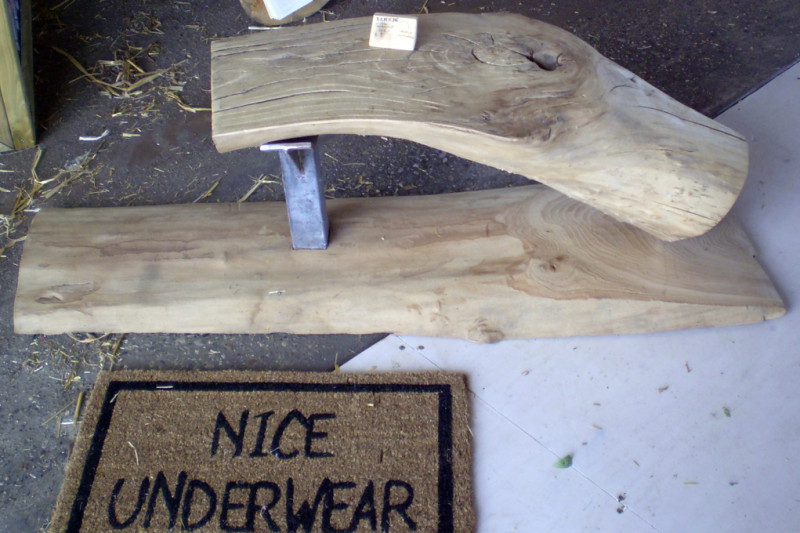Bankje #1 Beschrijving: stam van populier op een metalen steun Afmeting: 1 meter breed Prijs: verkocht